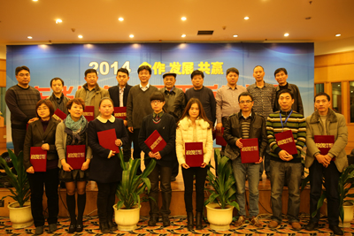 最后,內(nèi)銷公司總經(jīng)理戴迪漢和錢文孝宣讀了優(yōu)秀經(jīng)銷商名單。宣董事長(zhǎng)向優(yōu)秀經(jīng)銷商頒發(fā)了榮譽(yù)證書并合影留戀。