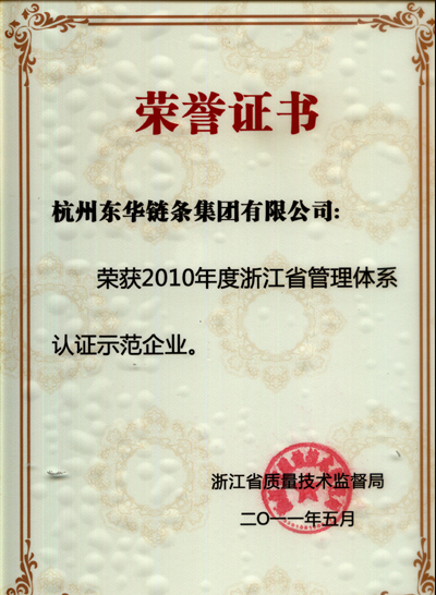 通過對質(zhì)量管理體系的認(rèn)證,規(guī)范了企業(yè)的管理,取得了一定的成果,此次被浙江省技術(shù)監(jiān)督局授予“2010年度浙江省管理體系認(rèn)證示范企業(yè)”稱號,充分說明企業(yè)在質(zhì)量管理方面取得的成果,并得到了省級機(jī)關(guān)的認(rèn)可。