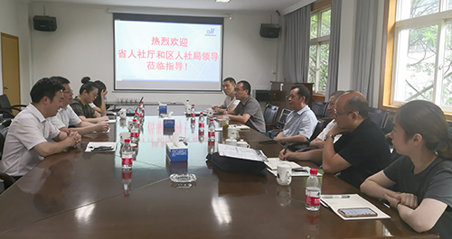 6月10日,浙江省人社廳信息處周劍揮處長、余杭區(qū)人力資源和社會保障局陳勇局長等一行到東華調研和三服務。集團副總經(jīng)理廖杭州、管理部副總經(jīng)理劉冬根等接待了客人。