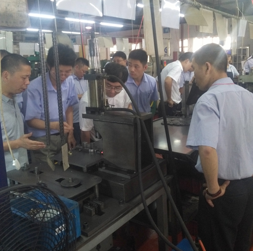 隨后客戶參觀了汽車鏈鏈條裝配車間、鏈板沖制車間等工序。在作業現場針對客戶提出的問題,接待人員均耐心地為客戶一一解答,客戶對公司汽車鏈條生產作業現場的生產能力和質量保證能力表示滿意。