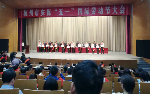 4月26日,杭州市慶祝“五一”國際勞動節(jié)大會在杭州市職工文化中心舉行,市人大常委會副主任、市總工會主席鄭榮勝、市“五一”勞動獎?wù)拢í劆睿┇@得者、各級工會干部和職工代表500余人參加會議。東華員工徐長明被授予杭州市“五一”勞動獎?wù)隆?/SPAN>