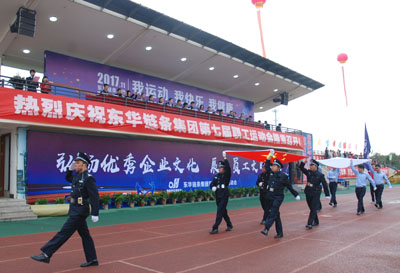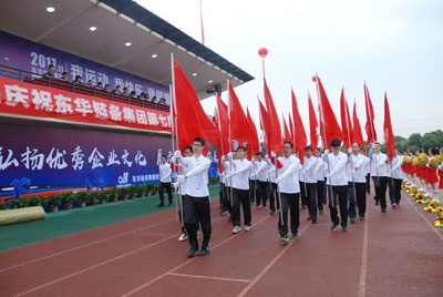 集團副董事長宣成致開幕辭。他說,在東華集團成立26周年之際,我們迎來了期待已久的第七屆職工運動會?;仡櫀|華集團26周年的發展歷程,在宣董事長的領導下,企業獲得了長足的發展,取得了可喜的成績。本屆運動的隆重舉辦,既是對我公司體育工作、體育水平和員工精神風貌的再一次檢閱,也是對廣大職工身體素質、競技水平、心理承受能力等綜合素質的考驗,它必將進一步推動我們公司體育運動的深入開展。希望全體運動員發揚更快、更高、更強的奧運精神,秉承誠信、務實、創新,求更好的企業精神,積極進取,頑強拼搏,賽出競技水平,賽出道德風尚,賽出個性風采,賽出團結友愛,創紀錄、上層次、出新人。副董事長最后說,預祝全體運動員取得優異成績,預祝本屆職工運動會取得圓滿成功。