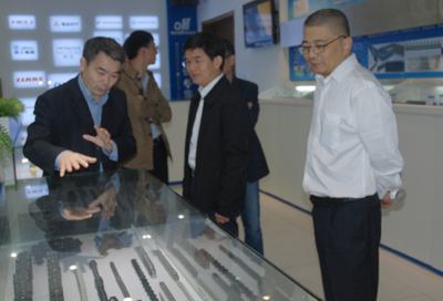 袁副總陪同劉副市長一行參觀了集團(tuán)公司新區(qū)樣品展廳,向劉副市長一行介紹了世界鏈條發(fā)展史、中國鏈條發(fā)展史和東華鏈條集團(tuán)發(fā)展史及公司所獲得的各類重要榮譽(yù),重點(diǎn)介紹了展廳中傳動(dòng)鏈、輸送鏈、板式鏈、工程鏈、扶梯鏈等各種精品鏈條的研發(fā)、制造和配套客戶。劉副市長一行紛紛提問或點(diǎn)頭稱贊表示認(rèn)可。