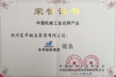 “東華”牌鏈條榮獲中國機(jī)械工業(yè)名牌產(chǎn)品稱號(hào)