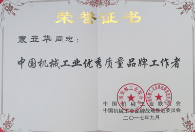 副總經(jīng)理袁立華被授予“中國機(jī)械工業(yè)優(yōu)秀質(zhì)量品牌工作者”稱號(hào)