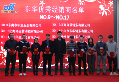會議期間,內銷公司總經理戴迪漢宣布了東華2016年17名優秀經銷商名單;盾牌公司總經理錢文孝宣布了盾牌2016年6名優秀經銷商名單。副董事長宣成向優秀經銷商頒發了獎牌并合影留戀。