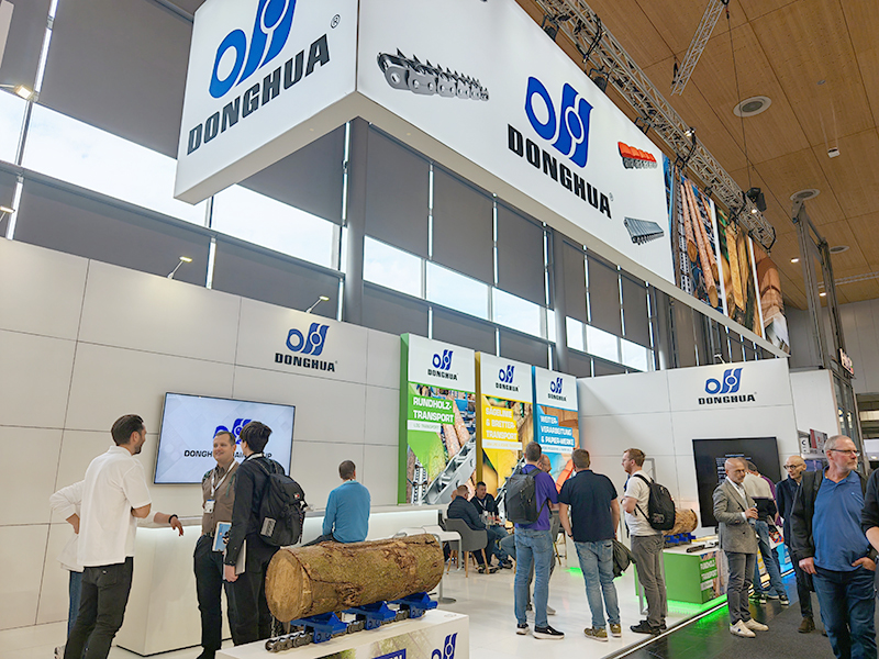 東華實(shí)施“走出去”戰(zhàn)略十多年來,國(guó)際化發(fā)展日趨成熟。近年,在公司實(shí)施18&60細(xì)分市場(chǎng)發(fā)展戰(zhàn)略中,專門針對(duì)歐洲市場(chǎng)需求,研發(fā)了覆蓋木工機(jī)械全場(chǎng)景應(yīng)用的高端鏈條,包括帶耐磨板圓木輸送鏈、尖齒鏈、帶塑料附件滾子鏈等,重點(diǎn)呈現(xiàn)了木工機(jī)械特殊新工藝專用鏈條,如林木采伐、板材加工、自動(dòng)化生產(chǎn)線等領(lǐng)域。這些產(chǎn)品在本屆展會(huì)上精彩亮相,吸引了許多全球客戶的目光。