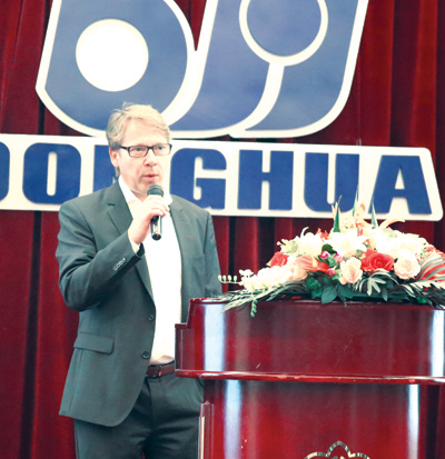 東華荷蘭公司總經(jīng)理Morskate就東華全球制造、品牌建設(shè)、銷售等進(jìn)行了匯報(bào)和展望。