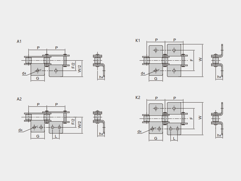 ● 不銹鋼滾子鏈結構、尺寸符合ISO 606等標準,主要有不銹鋼短節距滾子鏈、不銹鋼短節距直邊鏈板滾子鏈、不銹鋼雙節距滾子鏈、不銹鋼加長銷軸鏈等,以及相應的各種附件;